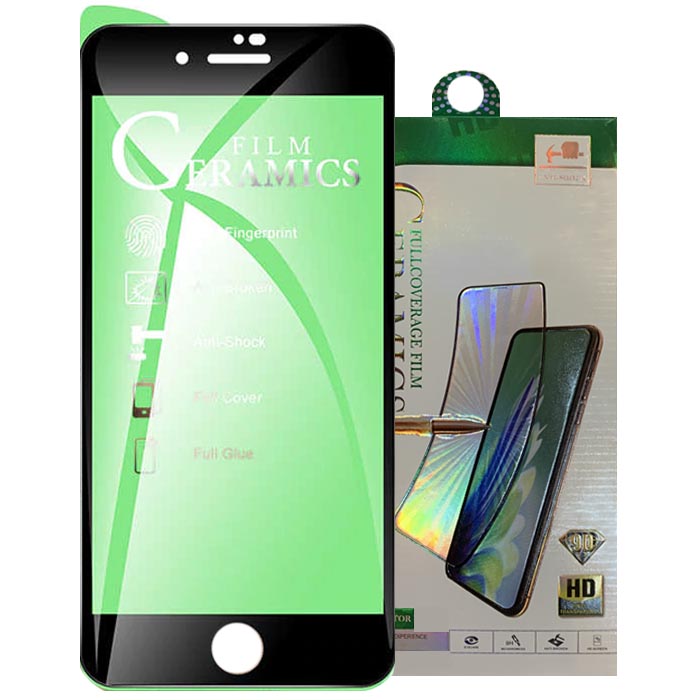 گلس گوشی آیفون 7پلاس و آیفون 8 پلاس با پوشش کامل محافظ سرامیکی اصلی آیفون 7 پلاس انعطاف پذیر نشکن با چسب کامل محافظ صفحه نمایش نانو سرامیکی آیفون رنگ مشکی